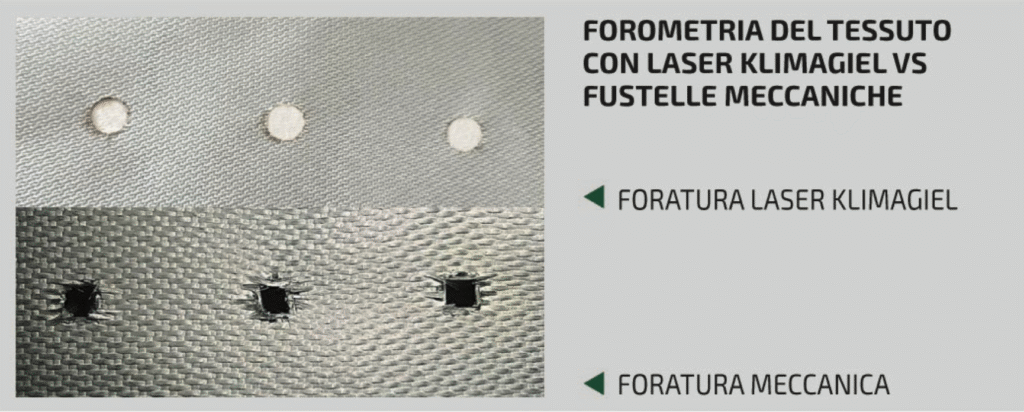 KLIMAGIEL’s laser technology allows optimal definition of perforation for each solution. This cutting method seals the hole, extending the channel’s lifespan and reducing fiber dispersion in the air-conditioned environment.